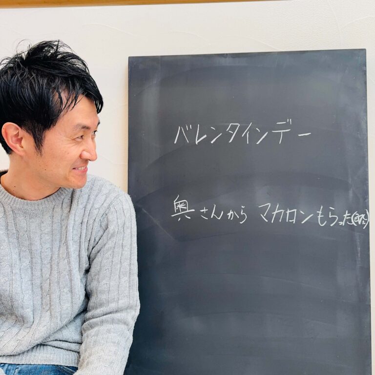 バレンタインデー、皆さんはいかがお過ごしですか? 僕は黒板に書いた通り、奥さんからマカロンをもらいました。 「奥さんから…